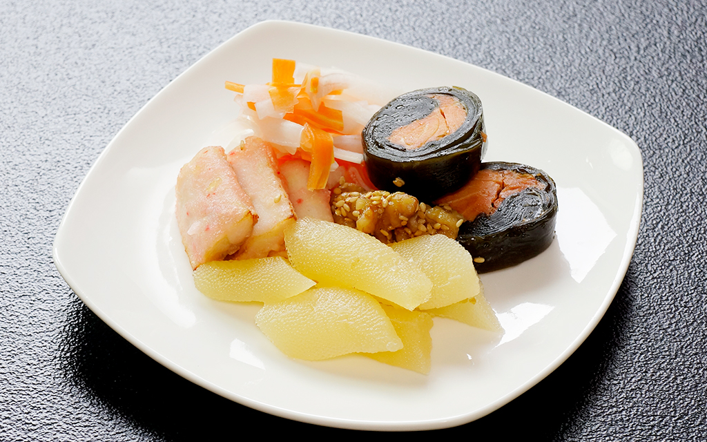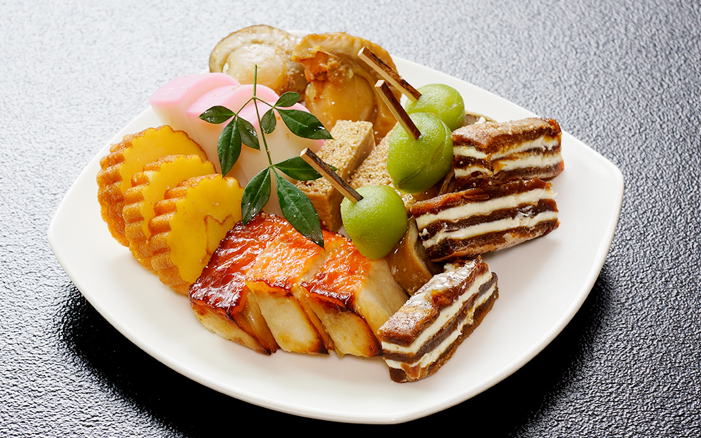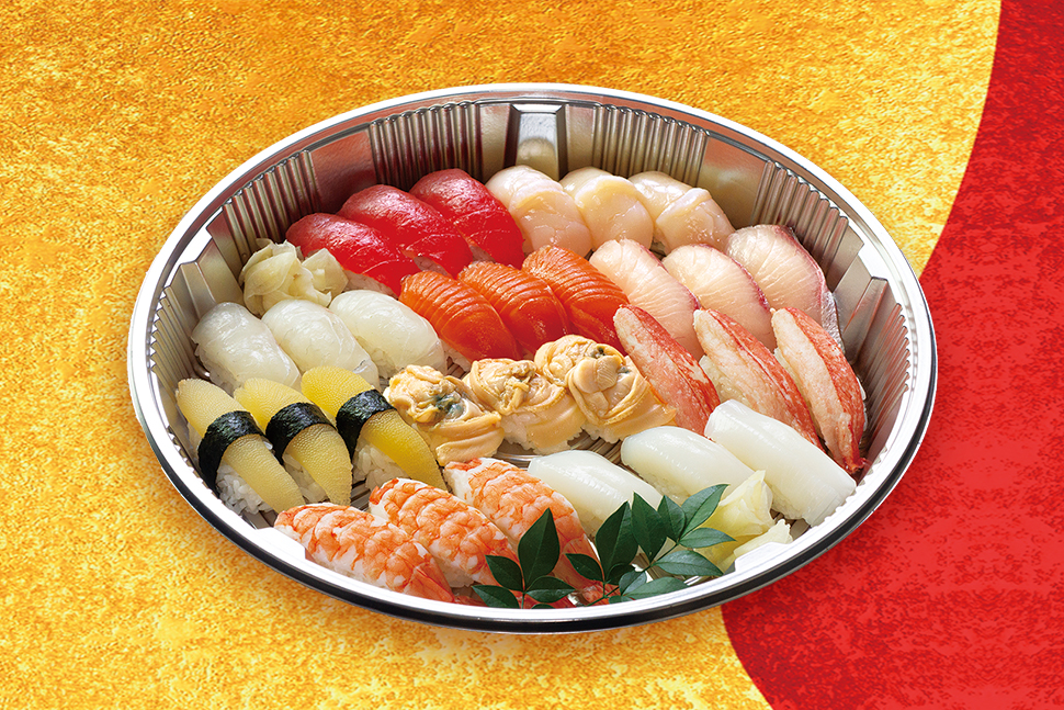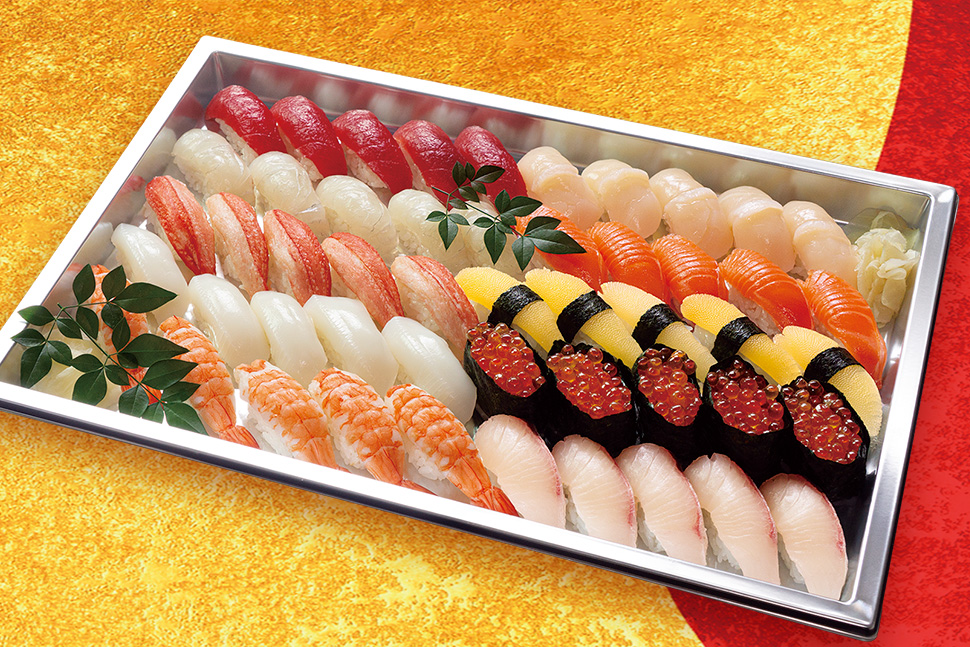 まぐろ・ほたて・真鯛・サーモン・はまち・数の子・煮はまぐり・かに・えび・いか